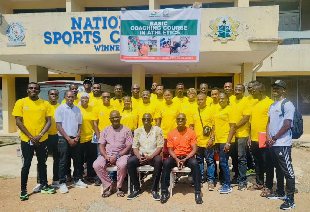 The Ghana Athletics Association, in collaboration with the National Sports College, Winneba, successfully concluded a 5-day Basic Athletics Coaching Course from November 25 to 29. The program trained 35 young coaches (30 males and 5 females) in key areas such as coaching principles, talent identification, sports psychology, injury prevention, and practical sessions.